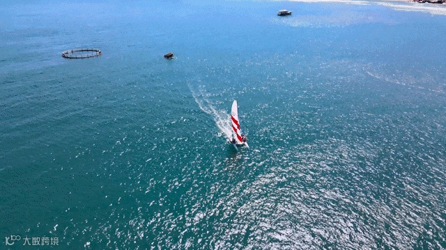 现在向我们驶来的是“拖轮”选手,他们时而奋楫争先,时而合作共赢,因为他们知道,这场比赛的对手从来不在选手之间,而是变幻莫测的风向和暗流涌动的大海。碧海蓝天,乘风破浪,一“帆”逍遥天地间,点点“帆”影与东海美景交相辉映,展示着东方大港的波澜壮阔!