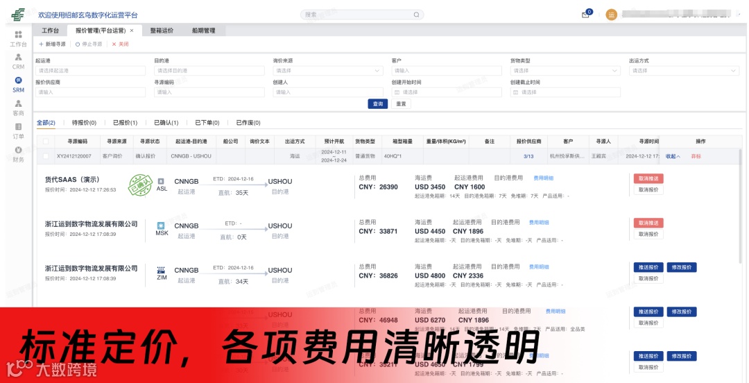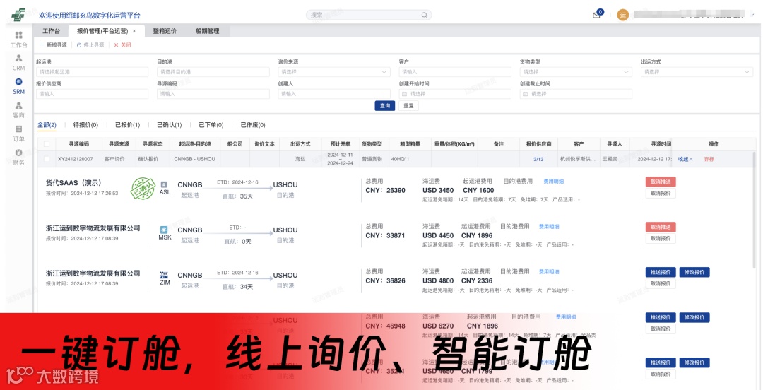 玄鸟订舱平台是对航运数智化电商模式的创新和探索,用户登录玄鸟平台,即可在线查询运价产品直接在线订舱下单,也可一键发起向上千家供应商在线询价,根据供应商在线报价情况,平台自动推送最优产品至客户端,客户点击接受报价后即可锁定运价,通过全链路AI人工智能应用,上下游的互联智能,实现一键在线下单、AI智能制单、端到端物流可视化追踪、自动对账结算、同行交易等平台服务。随着玄鸟平台在现场展示亮相,得到了与会嘉宾及企业家们的认可,聚焦数字化订舱,围绕舱位保障、拖报订服务、价格优势、供应商资源等问题展开了充分的探讨和交流,为平台集智“航”行出谋划策。