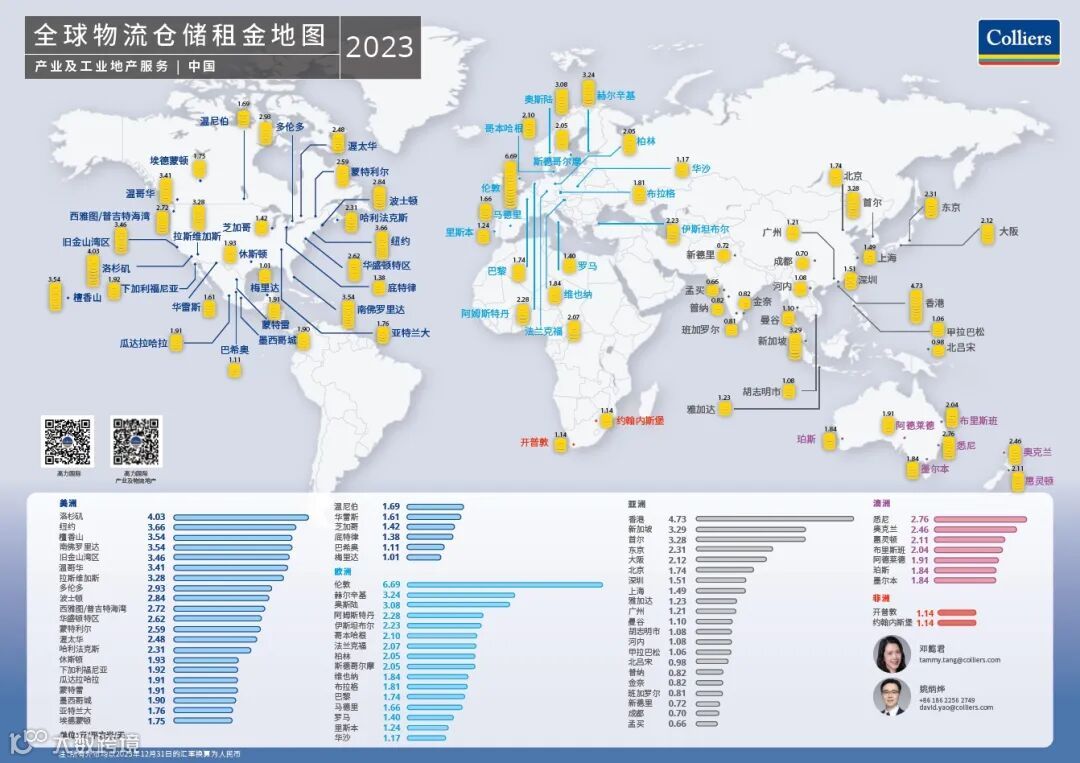 高力国际拥有覆盖全球的业务网络,实时掌握准确有效的全球工业地产行情。每一年,我们会针对全球重点城市的仓储物流市场行情进行调研,发布年度全球物流仓储租金地图,为中国企业布局海外提供精准的全球物流地产市场信息。