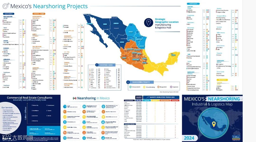 墨西哥企业落户及工业物流市场租金地图