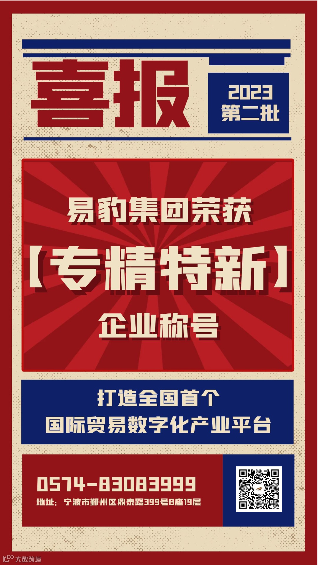 “专精特新”企业是指具有“专业化、精细化、特色化、创新型”发展特征,长期专注细分市场、创新实力较强、配套能力突出的优秀企业。“专精特新”是国家引导企业增强自身创新能力和核心竞争能力、不断提升自身核心优势的重要举措。此次入选宁波市“专精特新”企业名单,是对易豹科技创新能力和综合实力的高度认可及肯定,易豹将始终秉持打造全球国际贸易数字化平台的初心,以实干笃定前行,为进出口企业及港航物流服务企业供应链数字化转型升级赋能,助力数字经济与实体经济深度融合,优化国际贸易供应链体系,提升企业国际竞争力。