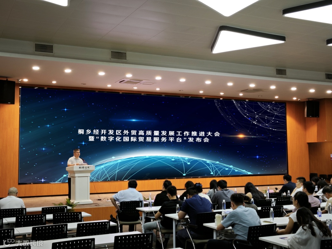 6 月 26 日,桐乡经济开发区外贸高质量发展工作推进会暨“数字化国际贸易服务平台”发布会在桐乡隆重召开。此次发布会由桐乡经济开发区管委会主办,得到了各级领导和相关部门的高度重视,吸引了百余家进出口企业及跨境电商企业代表参加。桐乡经济开发区管理委员会相关领导,易豹集团相关负责人以及多位平台业务专家,易豹生态内供应商伙伴出席本次会议。