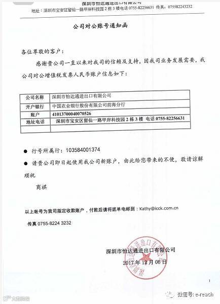 导读:易达通公司增值税收款账户变更通知