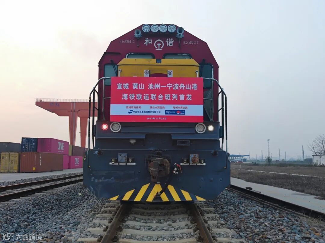 12月22日,宁波舟山港宣城国际陆港启用暨“宣城—宁波舟山港”海铁联运第3万箱发车仪式在宣城国际陆港举行。当天,“宣城 黄山 池州—宁波舟山港”海铁联运联合班列成功首发。