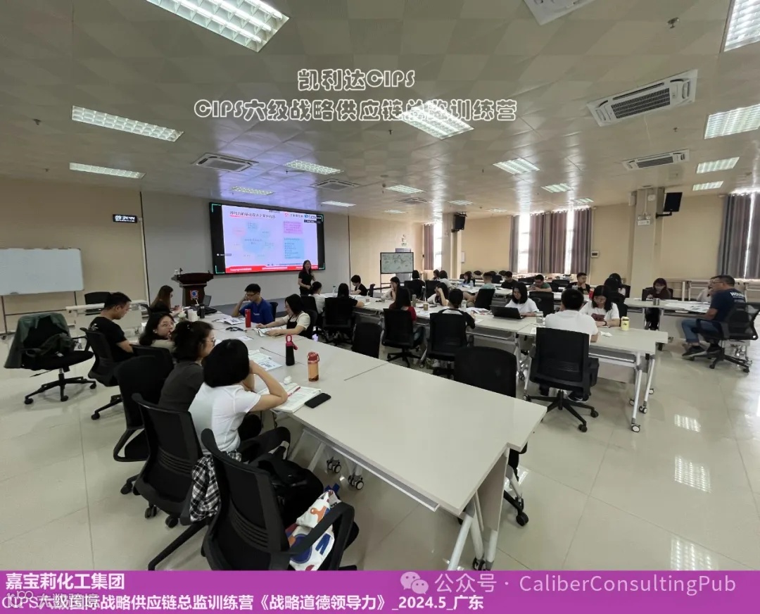 2024年5月18-19日,由深圳市凯利达管理咨询有限公司(CIPS广东省授权机构)承办的嘉宝莉化工集团采购中心(线下)及各分公司核心专业采购人员(线上)共同参加的CIPS六级英国皇家国际战略供应链总监训练营 - 第二期课程:《战略道德领导力》在愉快的课程亮点回顾中在嘉宝莉集团总部圆满结束!
