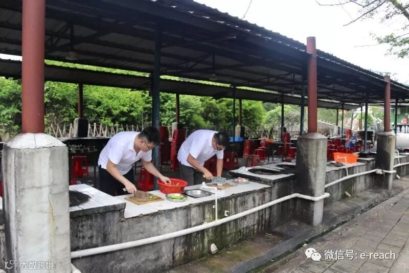 自己做的柴火饭,别有一番滋味,大家都吃的津津有味。在享受完美味佳肴之后,大家自由活动一会。有的去野外KTV ,让歌声回荡在山野中,有的泛舟水上,大家说说笑笑,忘却了午饭后的困意。