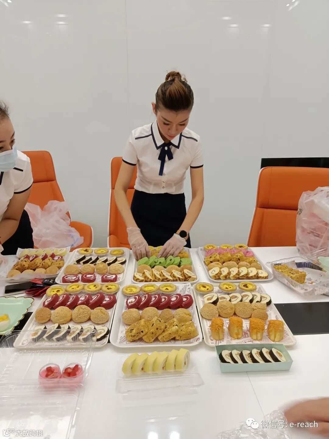 易达通电子零件物流平台怡达通公司于2021年5月中旬迁至龙华区龙光玖钻新的运营中心。因发展的需要,近期公司招聘了多名员工,行政部组织多部门经理分批对新员工做了岗前培训。为帮助新员工尽快熟悉公司环境快速融入怡达通大家庭,行政部精心准备了丰盛甜品、茶点、水果,于6月4日下午4点30分在公司会议室举办了隆重茶话会。