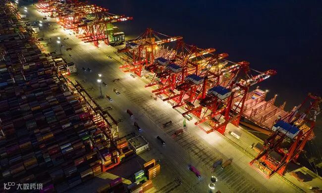 10月24日,上海港洋山深水港自动化码头夜间繁忙作业 图自IC photo