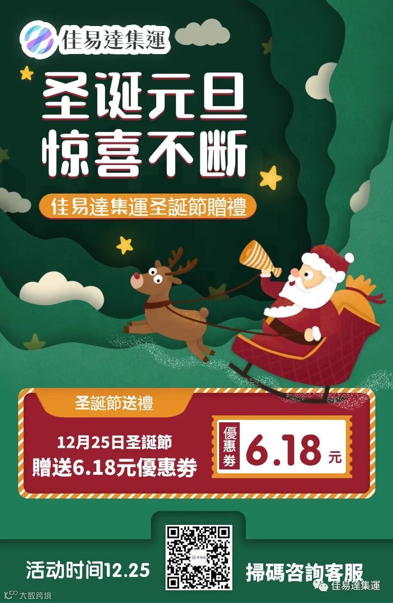 12月25日圣誕節贈送6.18元優惠劵,已發放