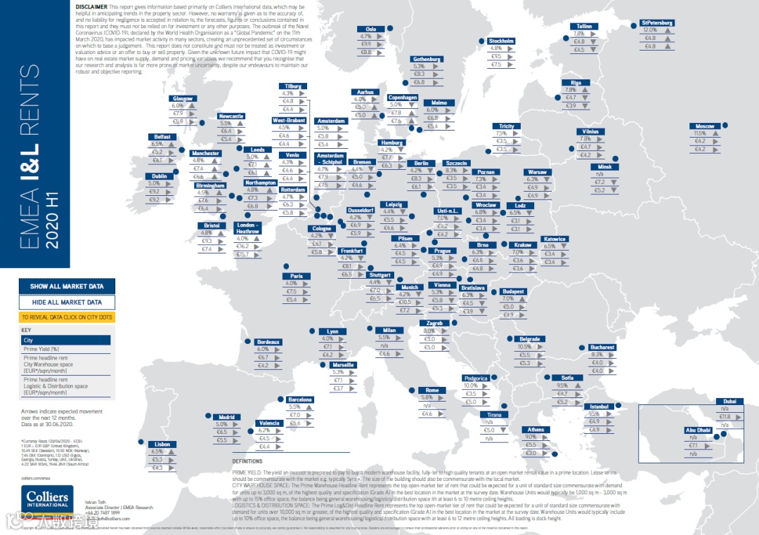 •EMEA物流仓储租金地图1H2020