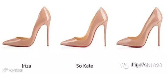 它家的红底鞋是出了名的,和JC尖头鞋一样锐利的款式是Iriza, So Kate和Pigalle。这三种款式基本只有侧面开口大小和鞋跟粗细的区别。