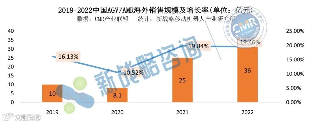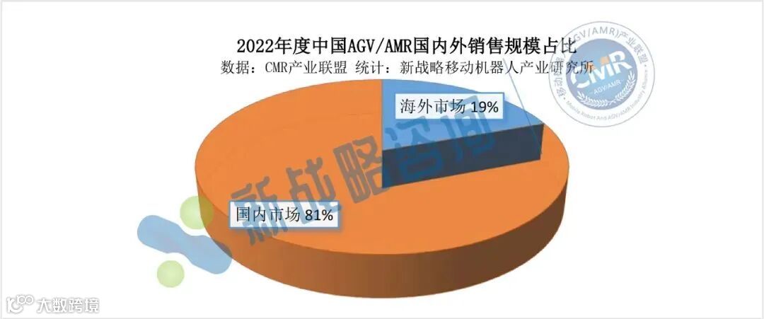 2022年,中国AGV/AMR企业在海外市场的销售规模进一步提升,根据CMR产业联盟数据,新战略移动机器人产业研究所统计