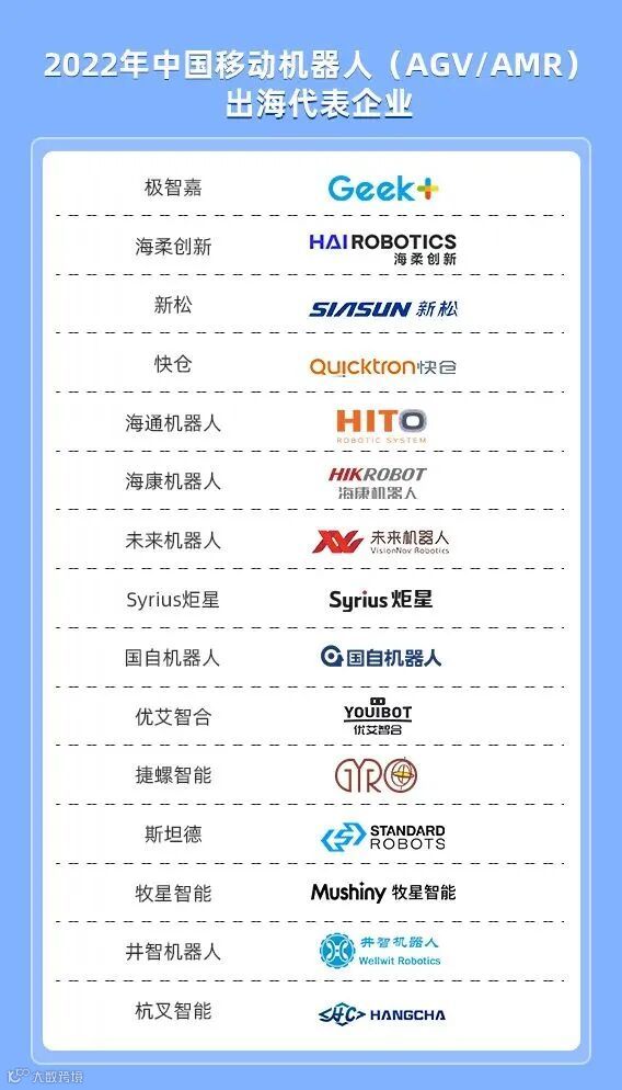 新松机器人、未来机器人、杭叉智能、极智嘉、海柔创新、壹悟科技、海通机器人