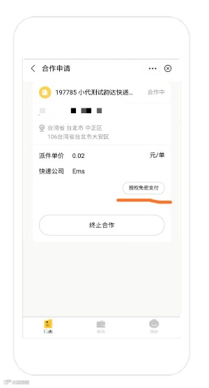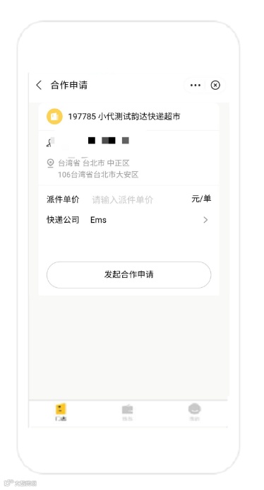 5.1输入单价和快递公司,即可发起合作申请;发送申请后门店通过审核之后生效。