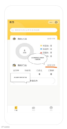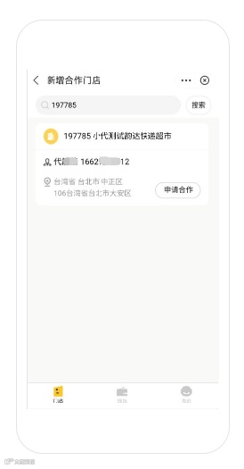 申请合作页面,输入门店编号,点击搜索,可以查看门店,确认无误后进入。