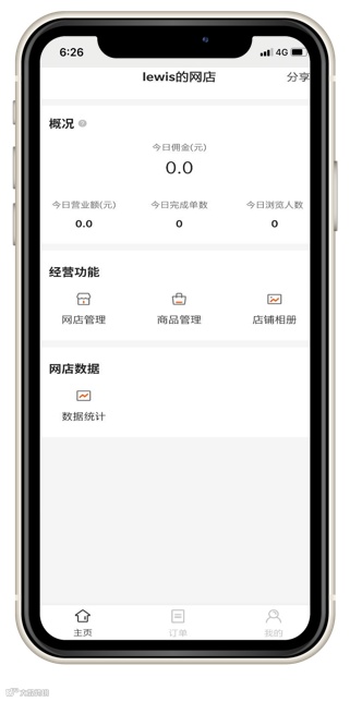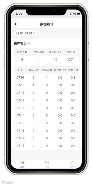 进入 [数据统计] 页面,查看自己小店的销售&收入情况。