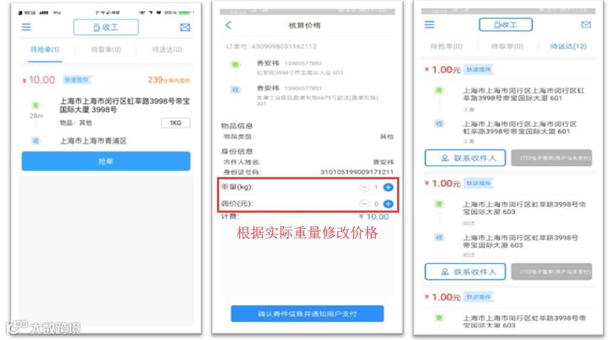 2、快递单需要根据客户快递的具体重量修改价格,客户支付费用后打印快递面单;