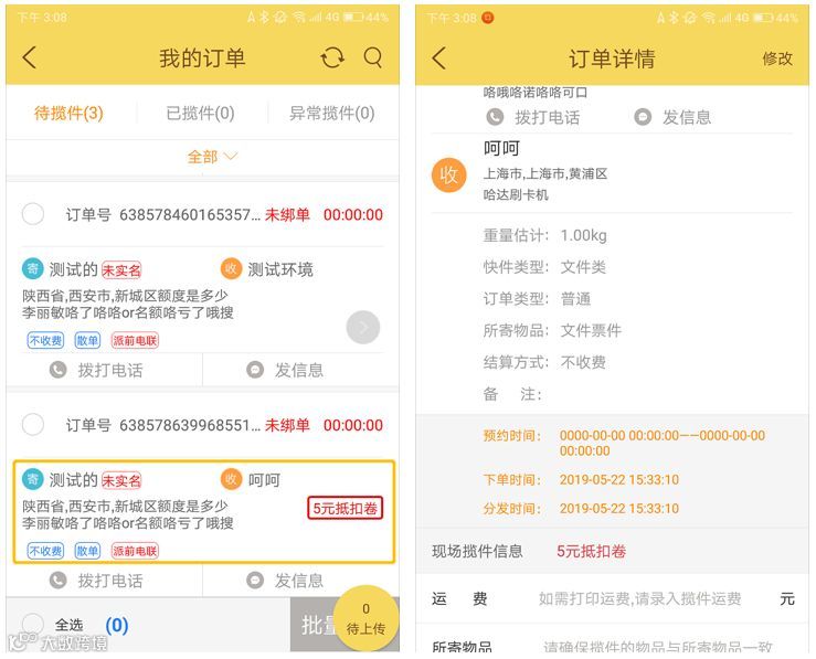 使用了快递费抵用券的订单,会有快递费抵用券使用标识,如图: