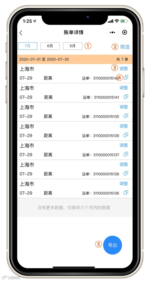 ①本月单量、②上月单量、③面单余量
