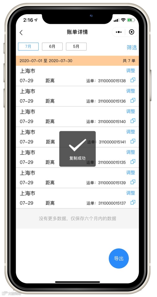 可以复制运单号