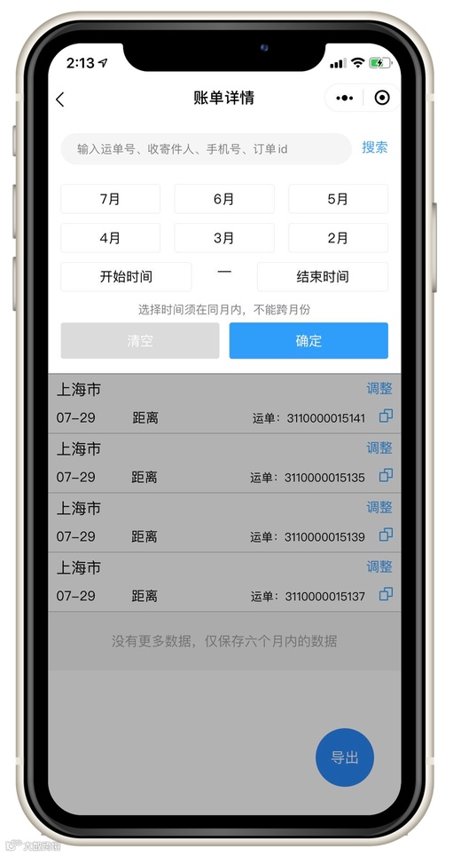 可以根据运单号、收寄件人、手机号、单号id