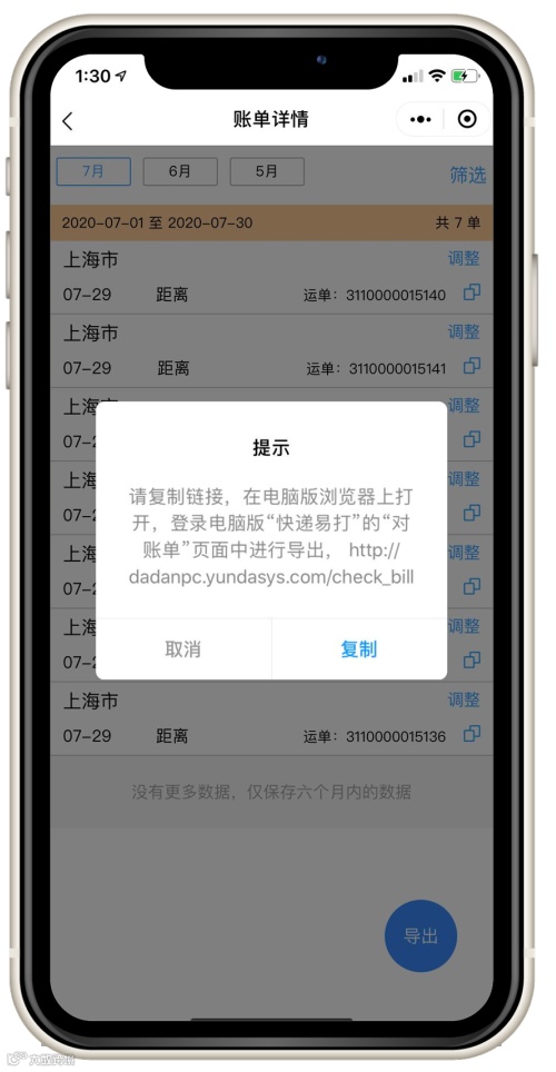可以根据提示复制账单详情链接