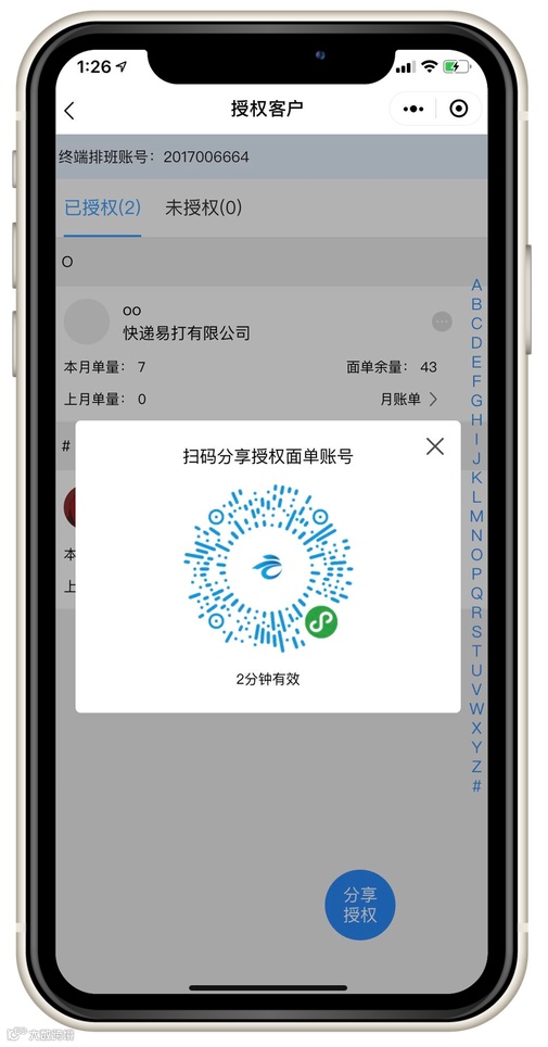 向他人分享电子面单