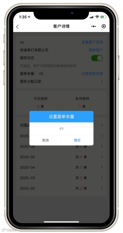 我们可以对客户的面单余量进行调整