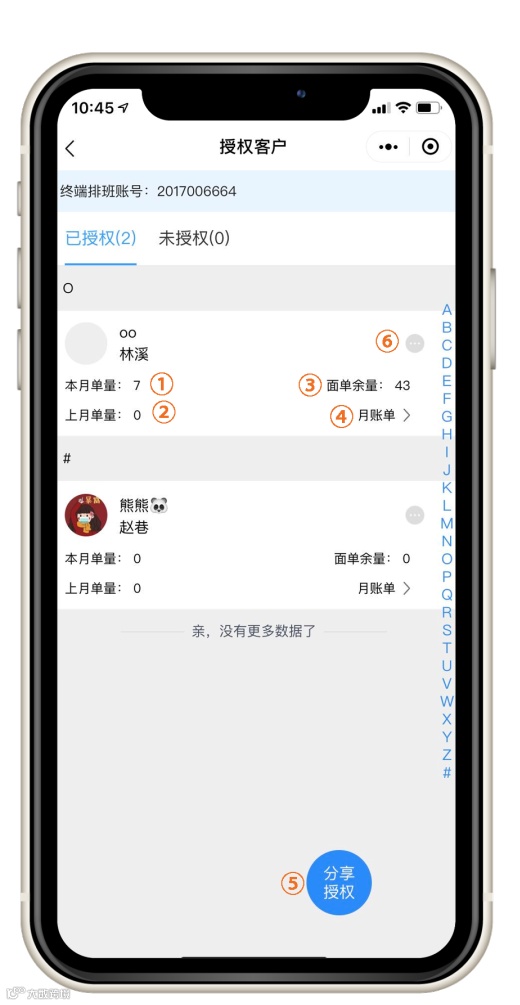 点击⑤[分享授权]