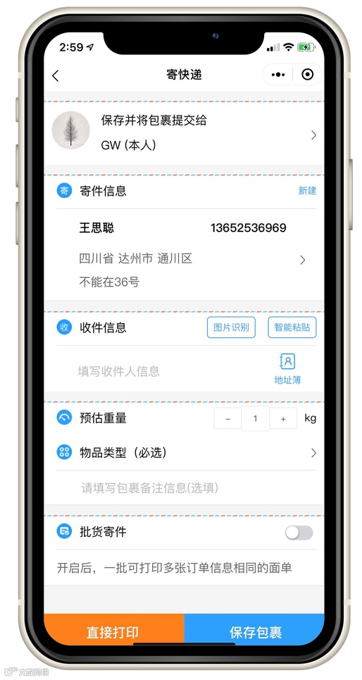 很方便地填写包裹的重量信息啦
