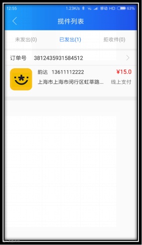 在揽件列表中可以看到订单目前的状态:未发出、已发出、拒收件。