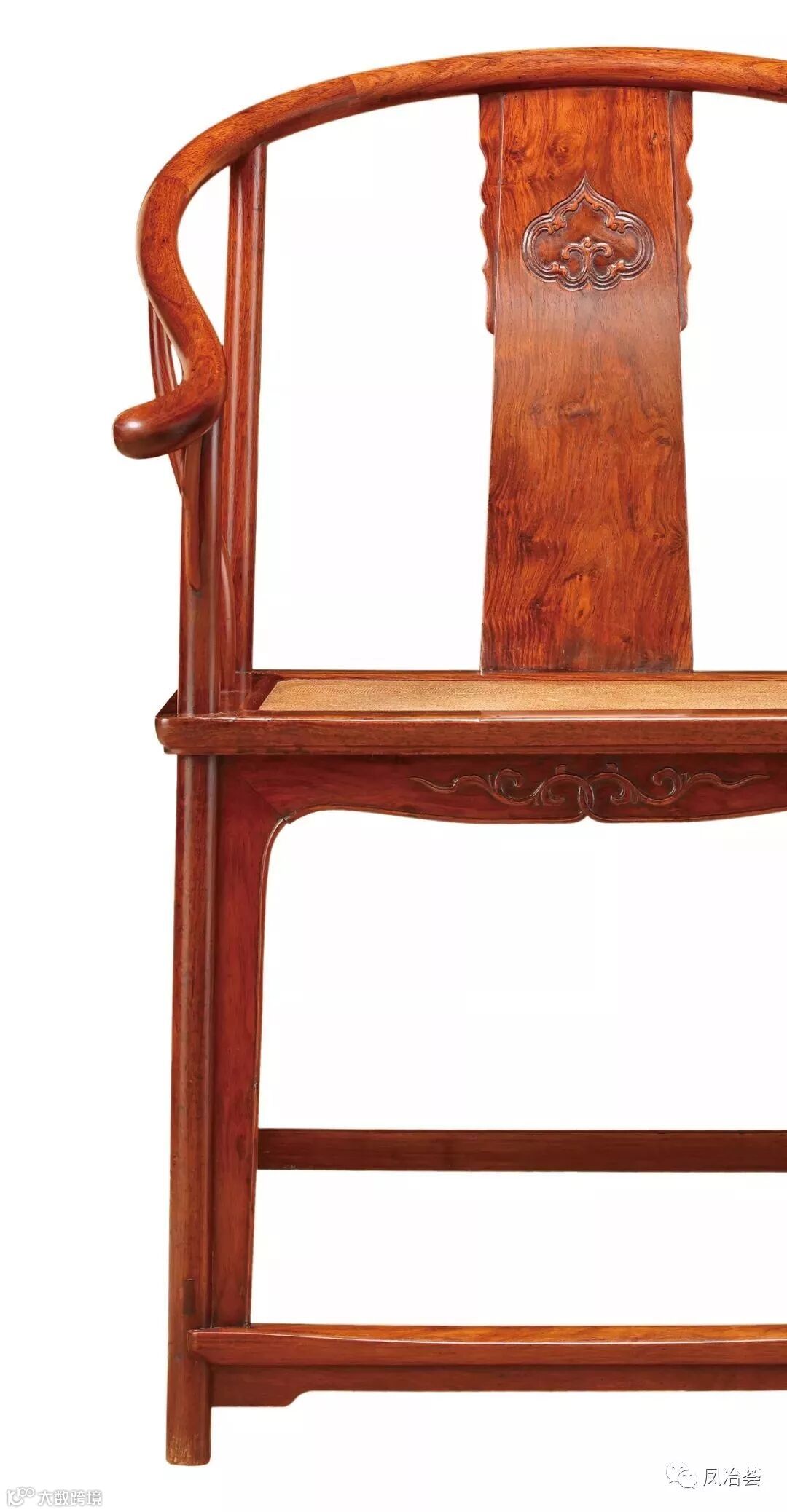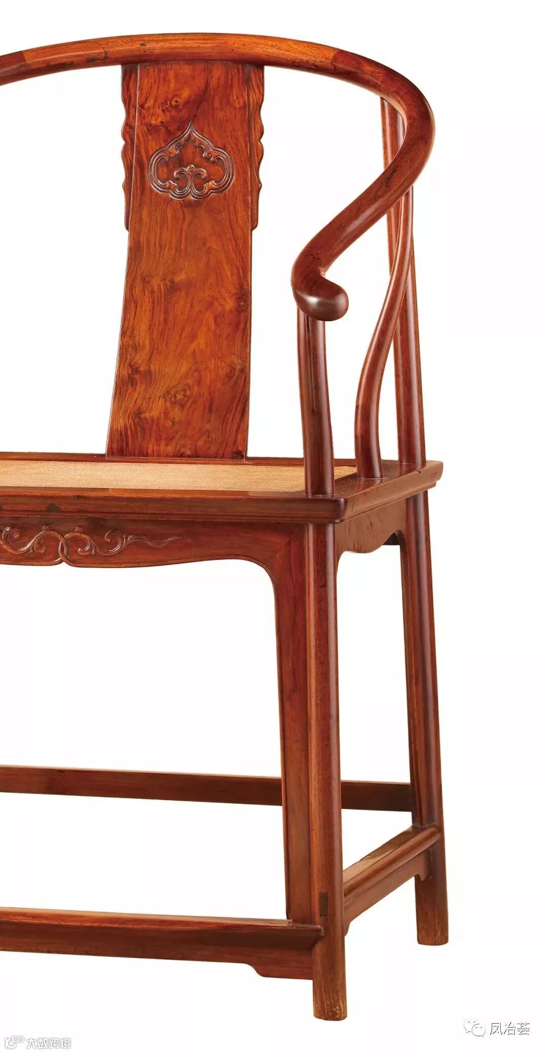 圈椅是明式家具中至为经典的门类,其上圆下方的造型甚契古人天圆地方哲学思想,扶手如垂露之凝,坐于其上,手臂得閒,舒服自然,是赏用兼备的家具。