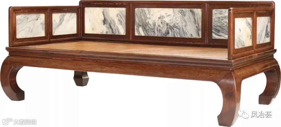5443 清早期 铁梨木镶大理石鼓腿膨牙罗汉床