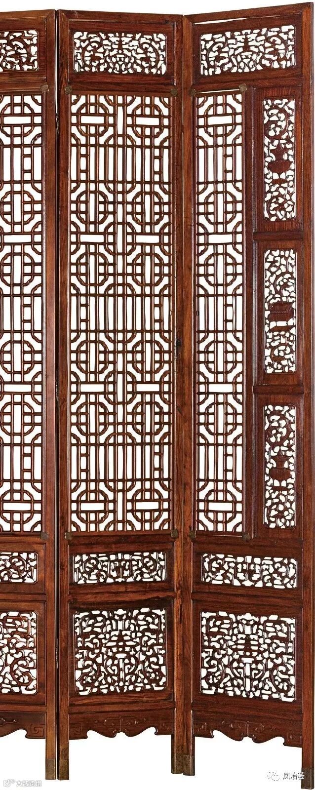 《长物志》曰:“屏风之制最古。”屏风是我国家具中历史最有悠久的家具品类,自周代已有,绵延数千年,从未中断。围屏至迟在魏晋时已见使用,唐时则以六曲屏风最为常见,此后不断发展变化,明代则以大型十二扇屏为流行,搁置室内外,即可作隔断之用,又可裱糊书画,具有很强的装饰效果。所见围屏,几乎无一不佳,但是如本例如此完整,制作如此精湛者,更是难得。