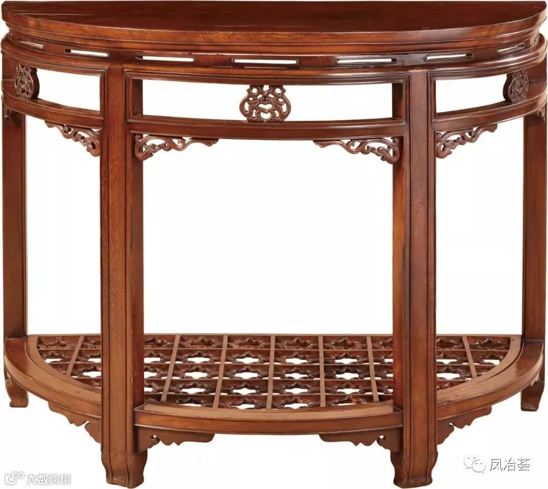 此半圆桌选料精细,用料较奢,雕刻下刀爽利,层次分明,装饰繁华,是较为典型的福建地区清中期制品。