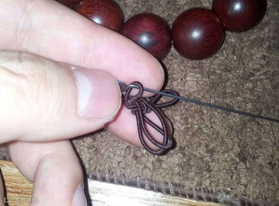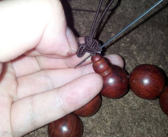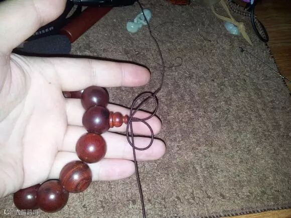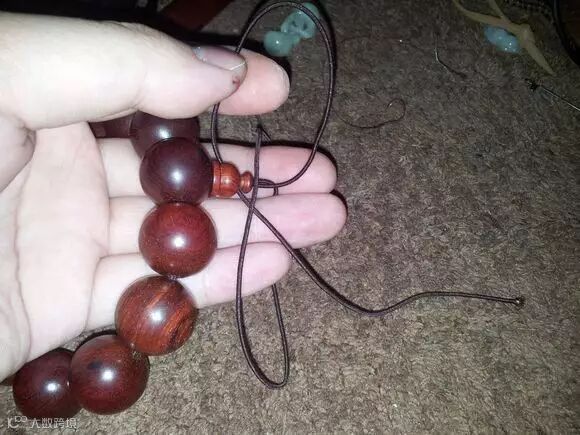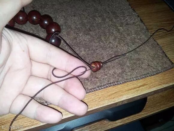 佛塔也占了一个方向的线,把手串向上翻过来压住方才的线。