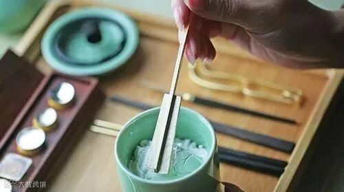 用香针在香灰的顶部打出碳孔,方便放置香碳。香针垂直插到底部,底部保持不动,转动香针即可。