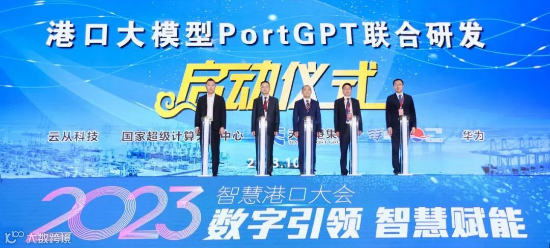 会上,集团与天津港集团、国家超算中心、华为公司、云从科技共同启动港口大模型PortGPT联合研发。这是国内沿海港口创新人工智能与港口业务深度融合,探索行业大模型应用加速智能化革新的积极尝试,也是浙津两港集团在《共建“世界一流”智慧港口战略合作协议》后的又一重要合作载体。