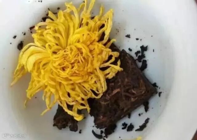 用普洱茶叶和贡菊,以3:1的比例置入茶具,一起冲泡,口感清爽。菊花清热解毒,普洱茶性温和,两者同时饮用,性能调和,功效倍增。