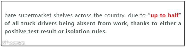 上周三,政府取消了针对卡车司机的7天滚动测试规则,以缓解运力短缺。