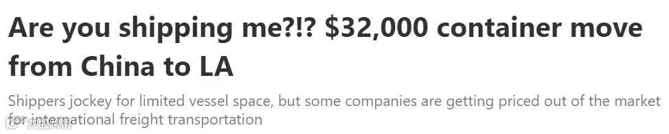美国大型供应链物流企业SEKO Logistics在7月底表示,根据一家航运公司的报价,从上海到洛杉矶运送一标箱将花费3.2万美元的天价。
