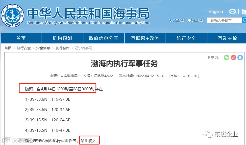 近期,多海域因执行军事任务持续禁航,请及时了解相关信息。