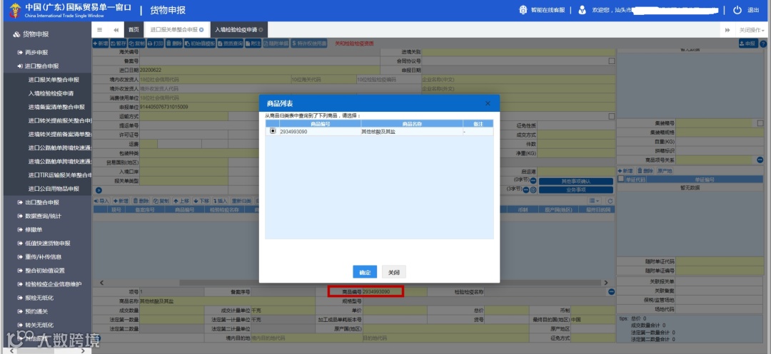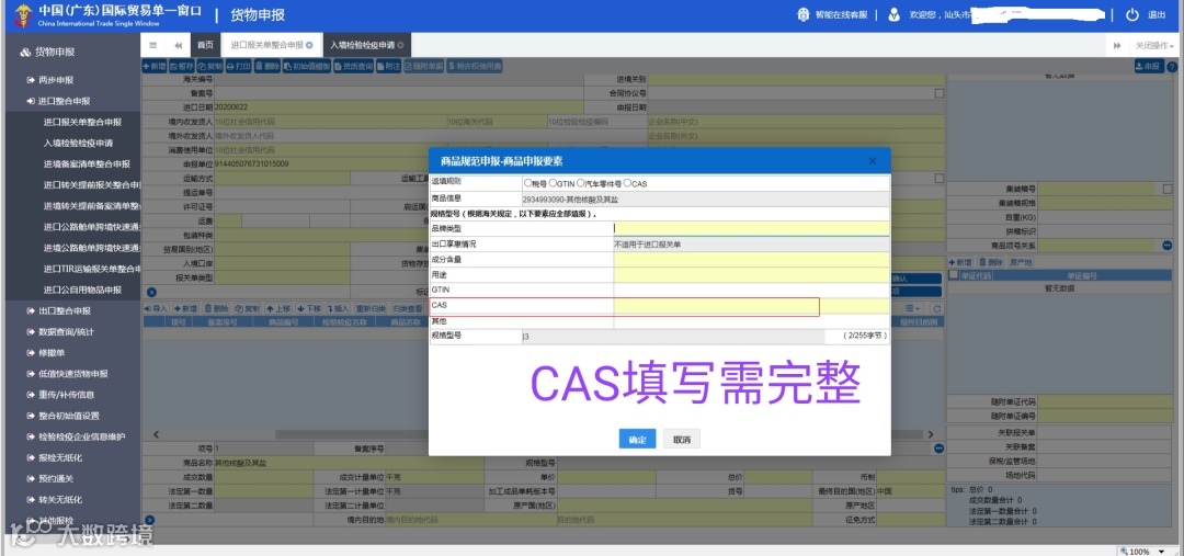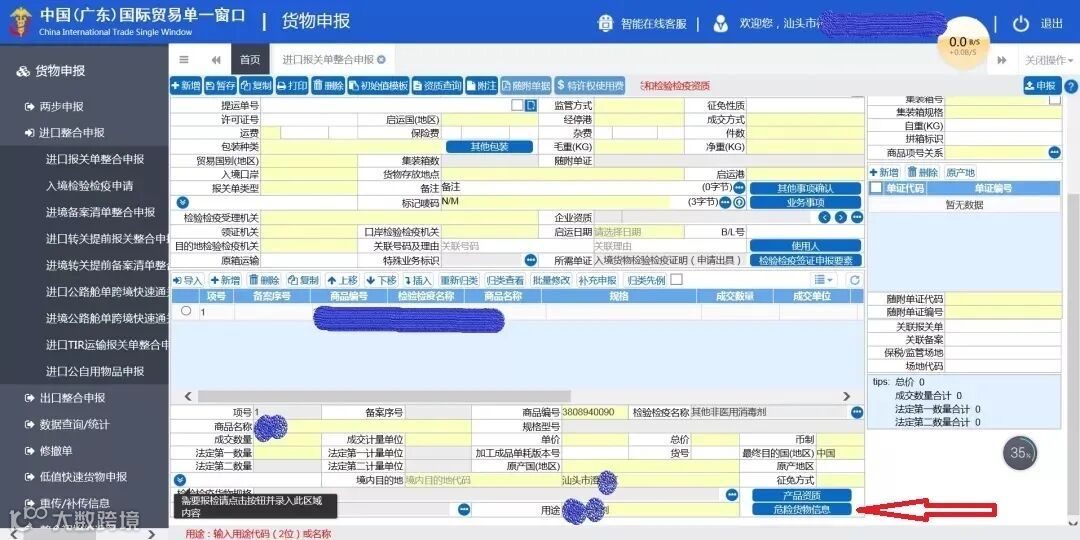 单一窗口申报界面