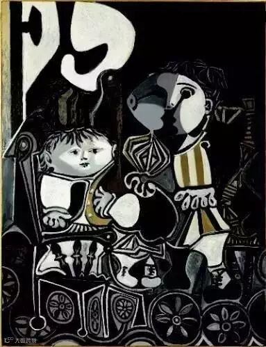 作品中的“两个小孩”分别是毕加索3岁的儿子和1岁的女儿。此画创作于毕加索风格趋于成熟的1950年。