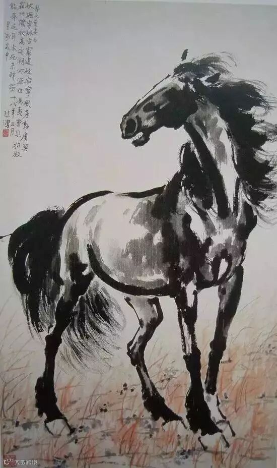 徐悲鸿《立马》,表达的是“微能奔走耳,未死未辞劳”的任劳任怨。
