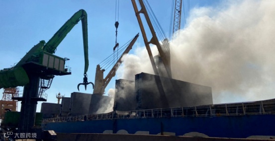 这艘船正装载着废金属,包括锂电池,据说是货物锂电池起火了。
