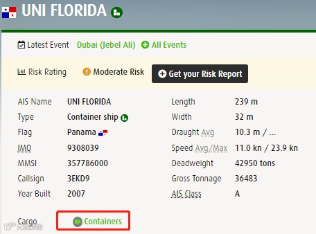 据报道,7月30日,“UNI FLORIDA””号集装箱船在驶往阿联酋杰贝阿里港口的航行途中发生集装箱堆垛倒塌事故。一些集装箱受损,一些可能掉到海里,关于事故发生的原因及集装箱受损坠海情况,目前还没有最终详细信息的确认。
