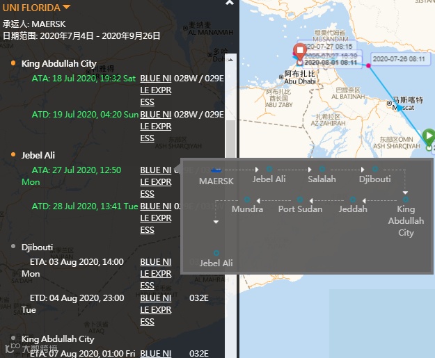 据悉,该轮服务于马士基在中亚和西亚的“Blue Nile Express”航线,其于7月27日从沙特阿拉伯驶往阿联酋的杰贝阿里港,在航行途中发生倒塌事故。“UNI FLORIDA”号集装箱船涉及多家船公司共舱:ALIANÇA、HAMBURG SÜD、MAERSK、MCC、SAFMARINE、SEAGO、SEALAND。