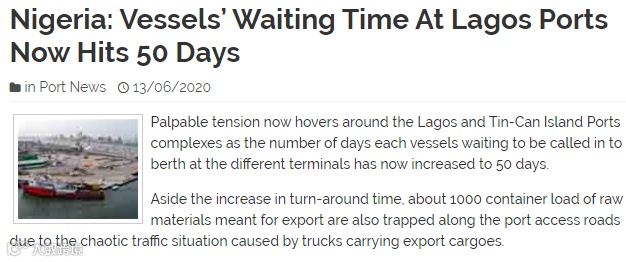 根据外媒报道,船舶在拉各斯和TIN CAN港口等待的时间已长达几十天。