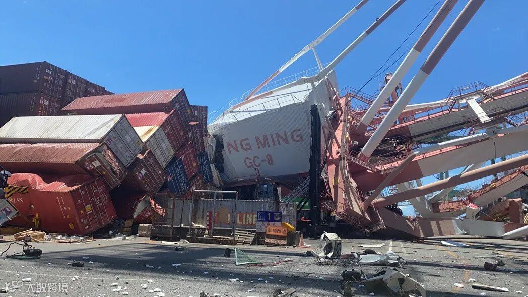 6月3日11时30分时,台湾高雄港70号码阳明码头,OOCL公司Durban轮疑似撞上阳明公司码头起重机,2台起重机倒塌,造成现场货柜毁损、1人轻伤、2名工程人员受困在起重机上。